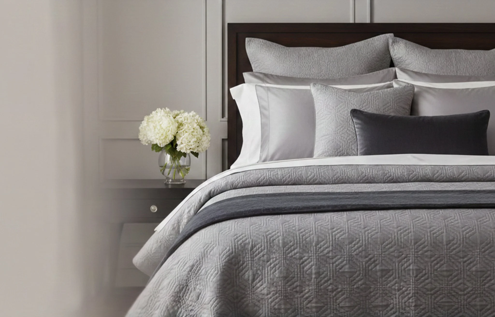 Thoughtful layers. Tailored luxury. From bedding to pillows and cushions, we create soft goods that add warmth, texture, and a finished feel.